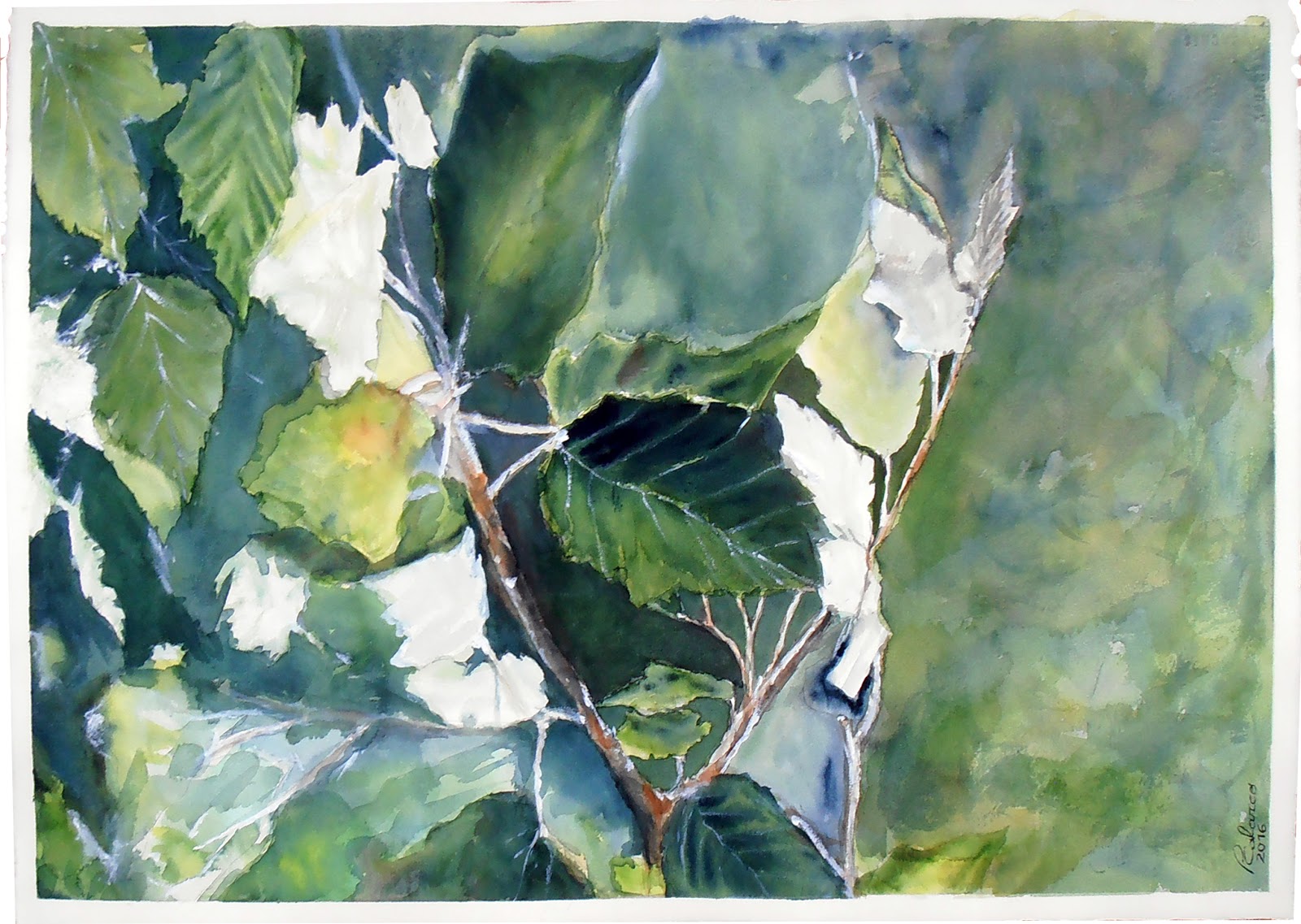 Última acuarela del 2016 álamo blanco 57x38 cm y ya tiene dueños viven en El torno en Jerez de la Frontera.