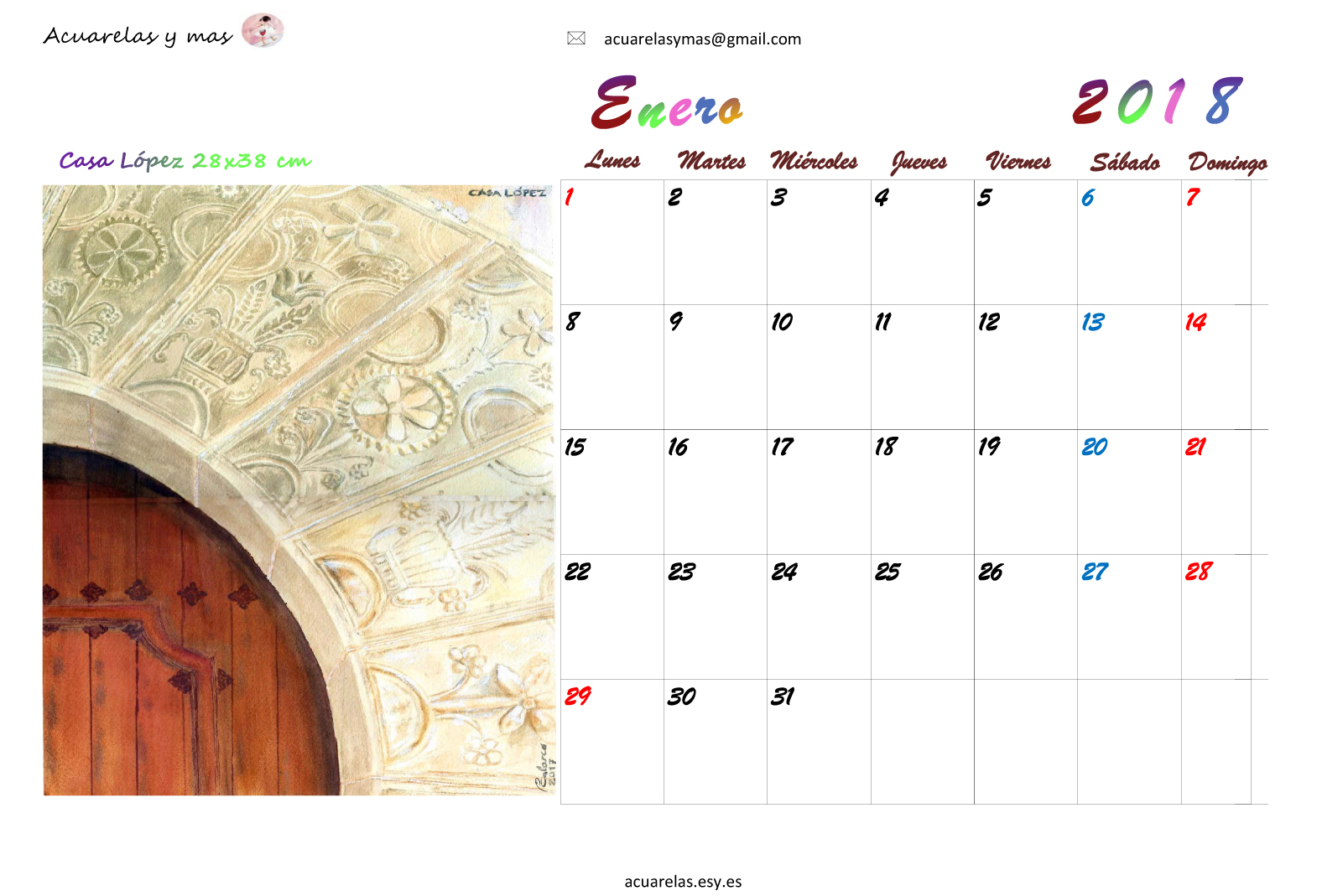 Enero en mi calendario 2018